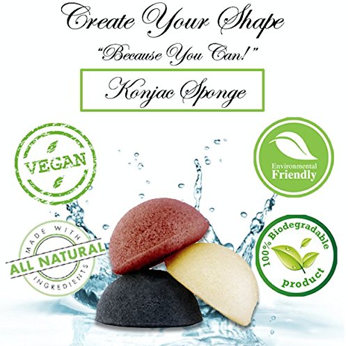 -. Title : Konjac Sponge (3 Pack) - Activated Bamboo Charcoal, Red Clay & Turmeric - Exfoliating Beauty Sponges By Create Your Shape