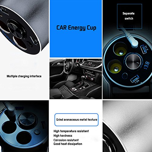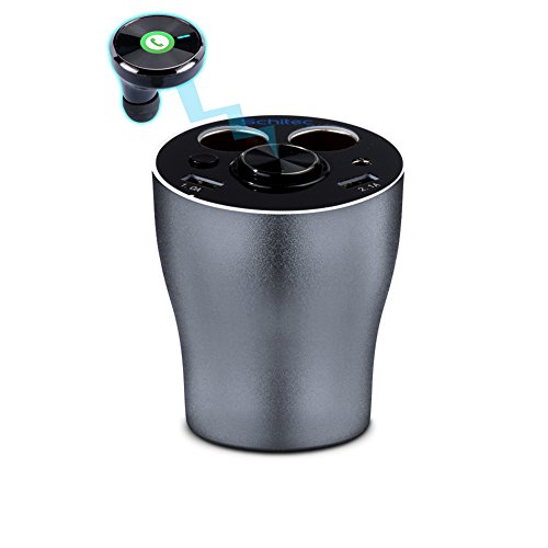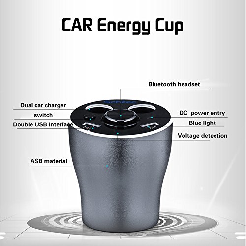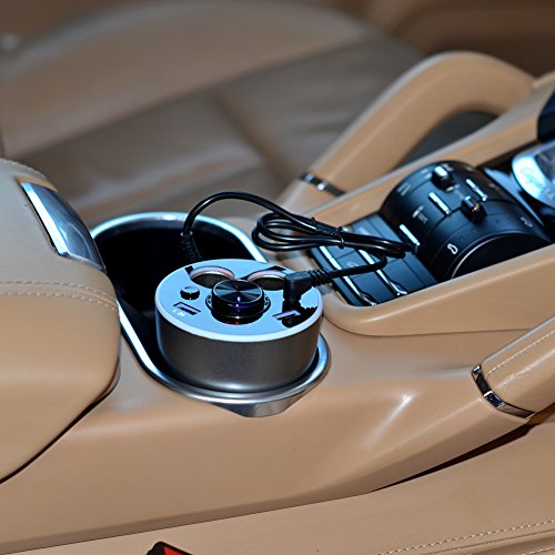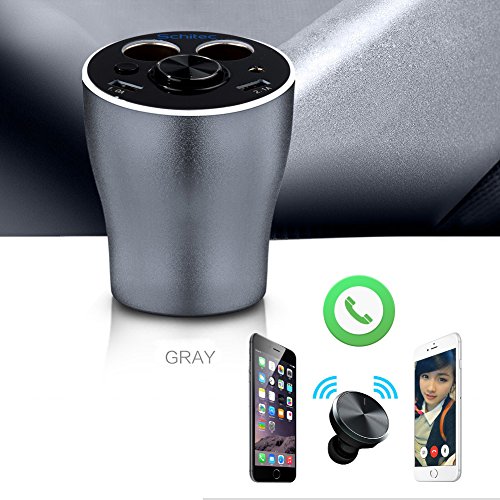 Car Cup Charger Bluetooth headset with 2 USB Ports and 2 Cigarette Lighters Plugs, SCHITEC Cup Holder Power Adapter, Switch on Buttons, LED Display, for Android Samsung, Apple iPhone, GPS and Windows