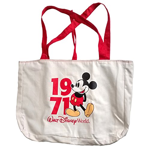 Product Description Created exclusively for Walt Disney World Resort and in a limited edition. Canvas, tan on one side, red on the other, with red handles. The Tan side has Mickey Mouse and "1971" printed on it. The Red side has black Mickey Mouse faces printed on both sides. Measures 18.5" wide, 13.5"" tall, and 2.5" deep. The strap drop is 12". 0