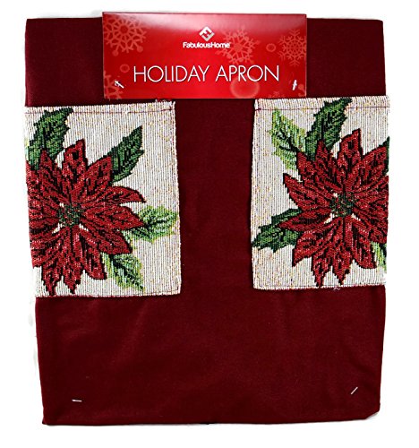 Fabulous Home Christmas Holiday Apron with 2 Pockets (Poinsettia)