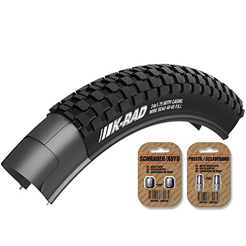 -. Feature : ***ONLY REPLACE TIRES WITH EXACTLY THE SAME SIZE [DIAMETER] x [WIDTH] AS USED CURRENTLY*** / K-RAD - Legendary checkerboard-shaped knob design giving increased grip without compromising straight-line speed / KNURLED TREAD SURFACE - For increased traction and control, with ribbing in-between knobs to strengthen the casing / FREE METAL VALVE CAPS - 3x Higher air retention over standard caps / SKYSCAPE CAPS WORTH $4.99 FREE - Schrader style (Presta available by request/email at the time of your order)