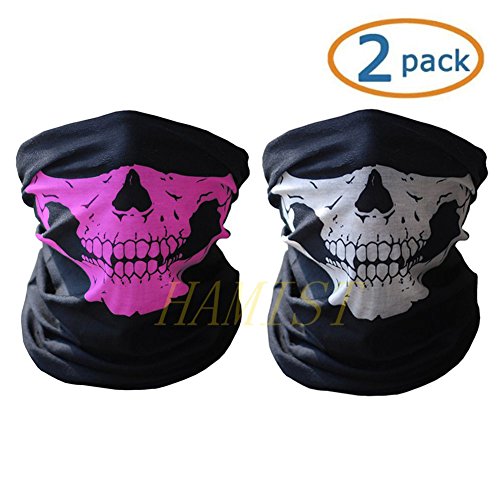 ONE SIZE FITS ALL.Come with 1 black and 1 pink seamless skull face tube mask.