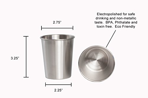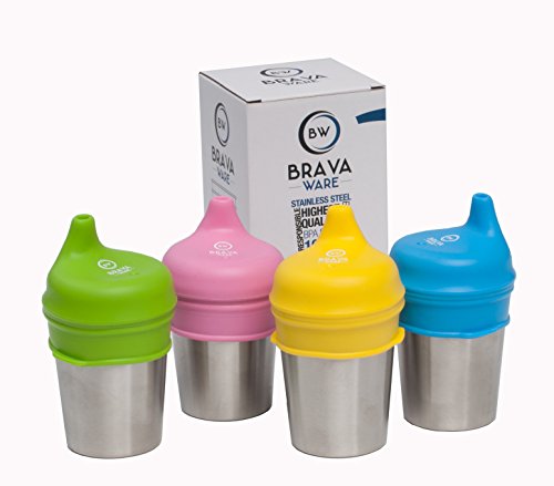 CONTENTS: These kids cups are a BUNDLE. Each set includes four 8 oz. Stainless Steel toddler cups and 4 Silicone Spill Proof Sippy Lids. Stainless Steel Sippy Cups for Toddlers!