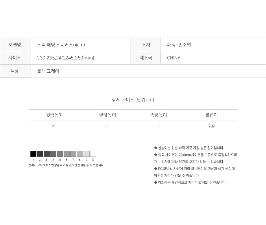 스넥 패딩 스니커즈(4cm)