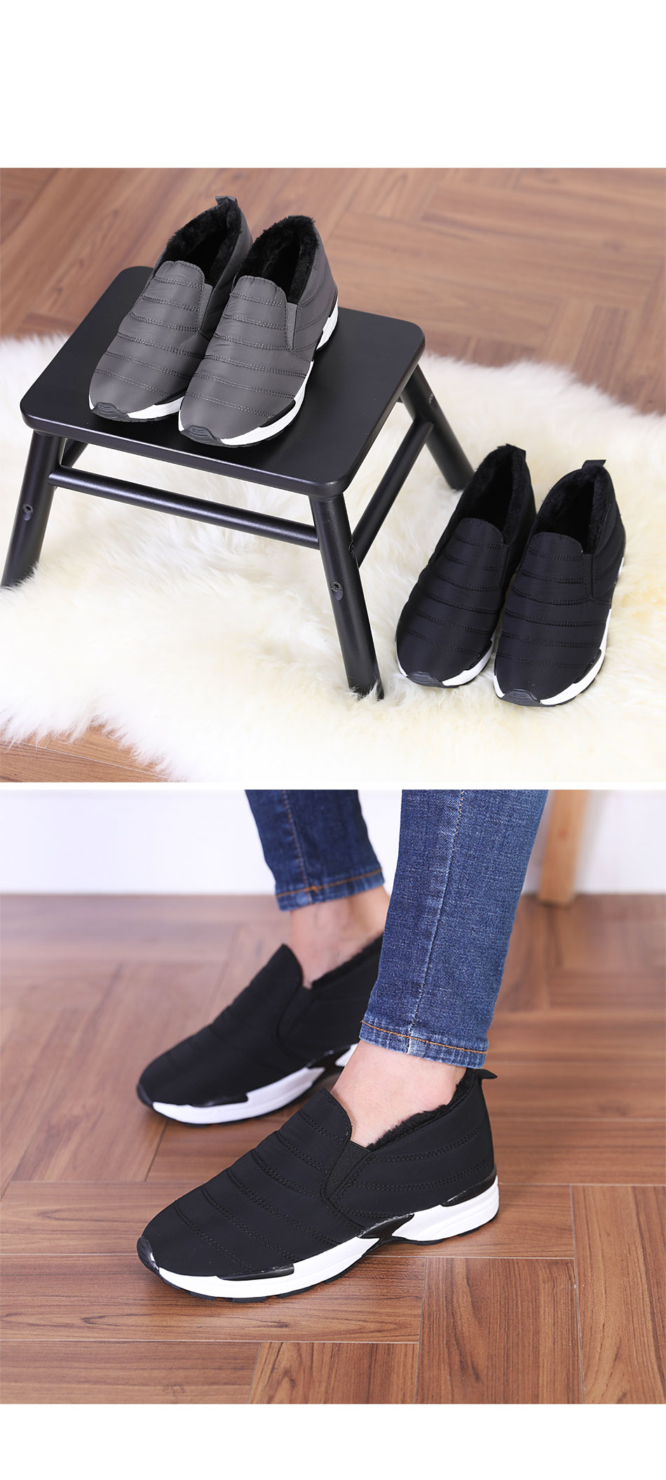 한겨울엔 패딩이 진리다!!!!!!!! 패딩소재에 인조털까지… 진짜 이래도발이 시리다면 할말없음.. 저는 맨발에 신어봤는데 정말 따뜻따뜻!+_+따뜻한 겨울나자고요 언니들