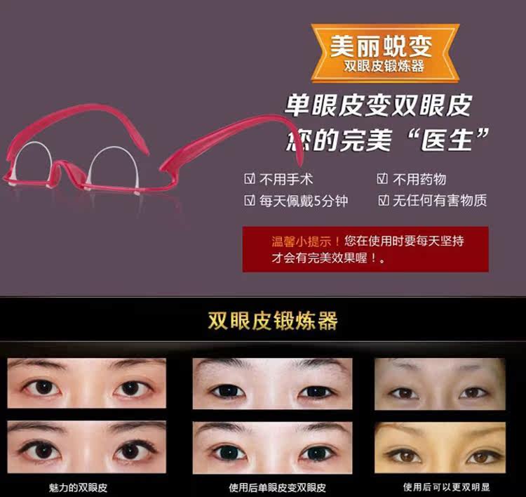 想着这个戴两三天,或者一两周就一辈子双眼皮的MM请绕道哈~这个不是魔术,不是您想变就能变的,双眼皮埋线手术的恢复期还要一个月呢,更别说切开手术需要的一年甚至更久!