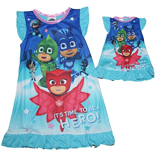 -. Feature : PJ Masks Girls Nightgown / 100% Polyester Flame Resistant Sleepwear / Owlette, Luna Girls, Gecko, Catgoy and More / BIg Girls Sizes 4-8 / With Matching Doll Gown