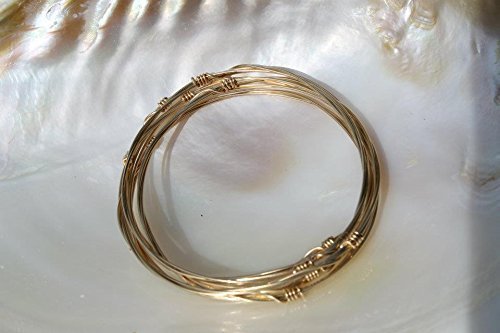 -. Title : 6 Bangle Bracelets - 18 karat gold filled hand wrapped wire bangles - set of 6