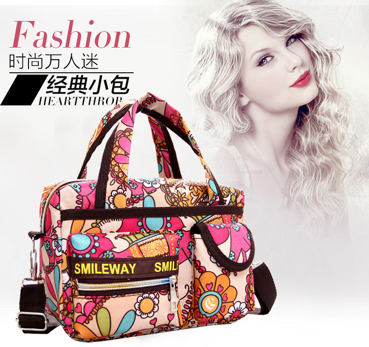 包包韩版新款花布包斜挎单肩包妈咪包手提女包小方包简约旅游女包