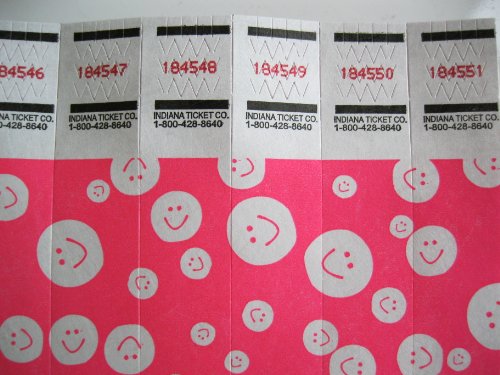 -. Feature : 500 Neon Pink Smiles Consecutively Numbered Tyvek Wristbands 3/4 Inch / waterproof, durable, great one time use / made from Dupont-Tyvek materials