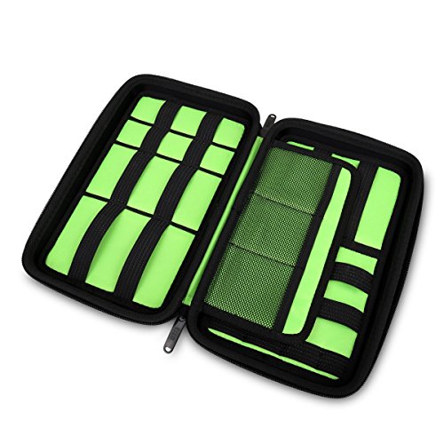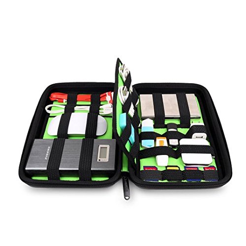 - Feature : Made of EVA material for superstrong water-proof effect, durable, semi-rigid exterior to protect valuable data, and waterproof nylon with well padded semi-flexible lining / 25 elastic loops to hold various items like hard drive, cables, memory cards, adapters, pens mouse and etc. 3 mesh interior pockets for cards / Versatile electronics accessories organizer specifically designed for well organized people / Dimensions L6.5" x H10.2" x W2" / weight 0.73 pounds