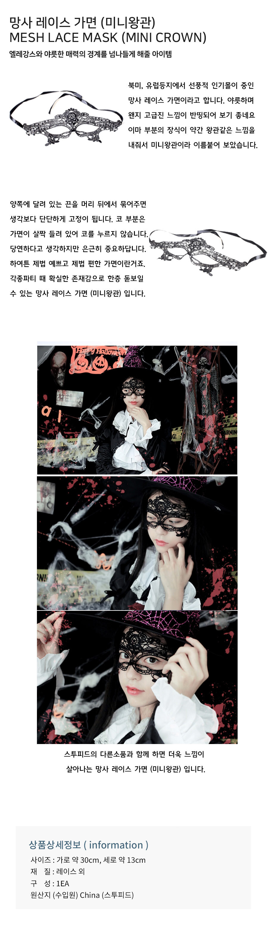 망사 레이스 가면 [미니왕관]