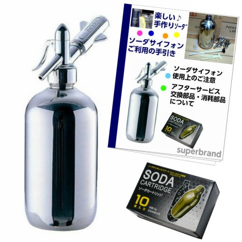 ●미니 가스의 톱 메이커 일본 탄산 가스의 국내 생산 탄산수 제조 기구 소다 (siphon)사이펀(상품 명칭:스테인레스 siphon)에 전용 소다 카트리지가 10개(10개입/상자×1개)붙은 특별세트입니다. ●소다 카트리지1개와 미네랄 수에 1000cc의 탄산수가♪ 하이 볼~카《시스소다》~칼피스 소다~좋아하는 소다 드링크를 간편하게 즐길 수 있습니다! ●안심 식품 첨가물 인가 탄산 가스 사용! *수에 탄산 가스를 더하고, 생긴 탄산수에 위스키나 스피릿츠,좋아하는 시럽 등을 나누기,소다 드링크를 즐깁니다.수 이외인 것(와인이나 쥬스 등)를 넣고 사용한 경우,고장의 원인 이되기 때문에, 멈추어 주십시오. *1회당 카트리지는 1책만 사용해 주십시오.(2개 이상의 사용은 파손 부상(상처)의 우려가 있습니다)