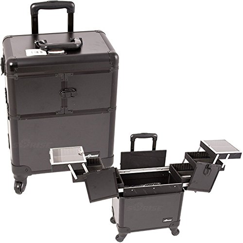 -. Title : SUNRISE Professional Makeup Case on Wheels C6304 Aluminum, Two 3 Tier Trays, 4 Wheel Spinner, Locking with Mirror, Black Matte
