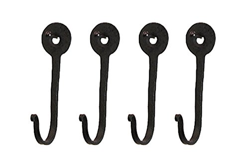 Early American Single Prong Wrought Iron Hooks, Set of 4 - Rustic Curved Metal Fasteners - Decorative Colonial Wall Décor