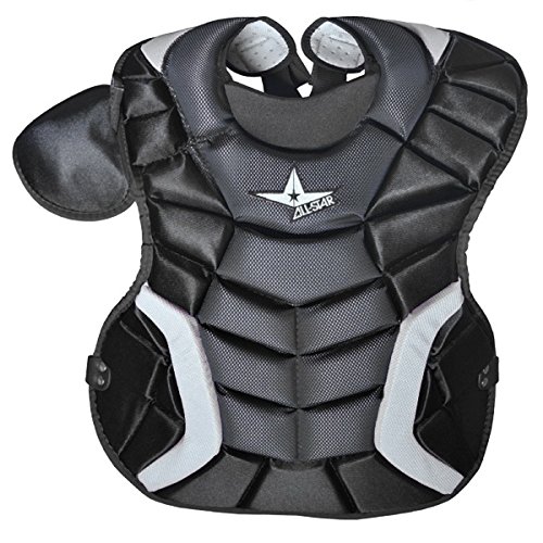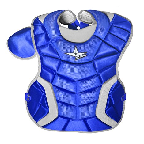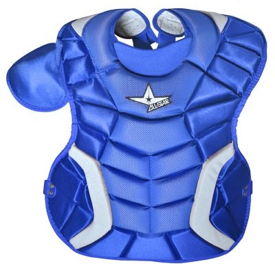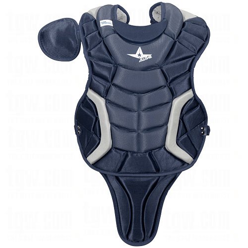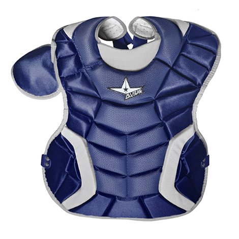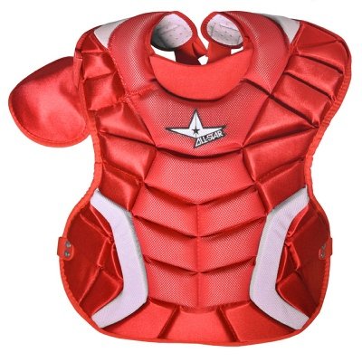Studio : All Star Publisher : All Star Binding : Misc. Product Description All Star Youth Chest Protector...Reliable Protection Behind The Plate! All Star Baseball knows safety. Designed with memory foam to increase both protection and comfort, the chest protector also features additional convenient components so you don't have to dread outfitting yourself in bulky, heavy gear.All Star Youth System 7 Chest Protectors feature: * Constructed of low rebound memory foam which increases dampening, breathability, and flexibility * Fully adjustable shoulder cap * Ultra Cool venting keeps players comfortable * Side "U-Bars" help conform the chest protector to a player's body and also help present a solid target which pitchers love * Wraparound sides increase protective material * Lightweight plastic plates around the collar bone, throat, and sternum areas so that the chest protector will take the brunt of the impact, not you * Delta Flex harness keeps protector snug * Strap lengths are 100% adjustable, allowing for a customized fit * Removable tail offers additional protection * Protected by Aegis Microbe Shield to protect against bacteria and eliminates odorsColor: Black Navy Royal Scarlet Sizes: 14.5" 15.5" All Star Baseball...Move Forward, Rise Above! 0