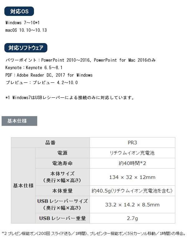 | 遠隔地とのテレビ会議や複数モニターを使用するプレゼンなどにオススメのプレゼンターです。タイマー機能、バイブレーション機能も搭載しており、講義やビジネスシーンで活躍します!!表面はネイビー、裏面はブラックの落ち着いたカラーです。 |