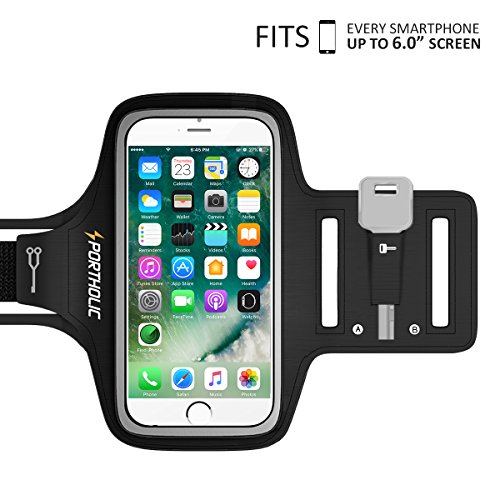 PORTHOLIC iPhone 7 Plus 6s Plus 6 Plus Workout Armband, Samsung Galaxy 6/7 Edge s8/s8 Plus, LG G5, Note 2/3/4/5 with Key&Cards Holders, Cable Locker (6.0-Inch)