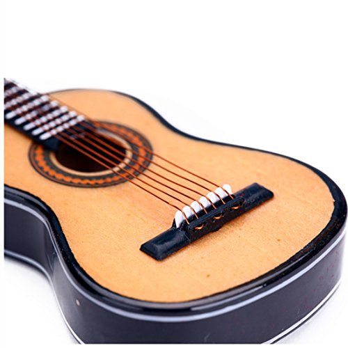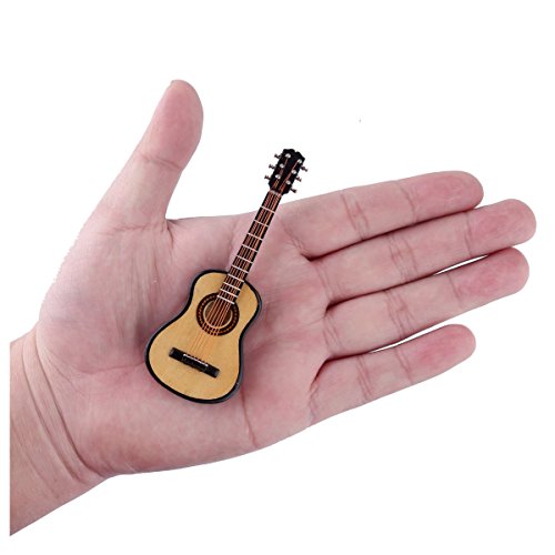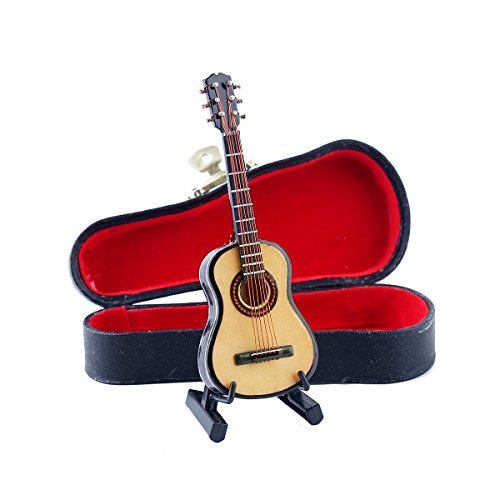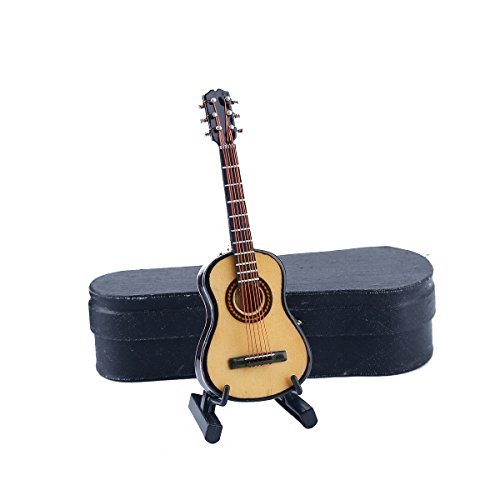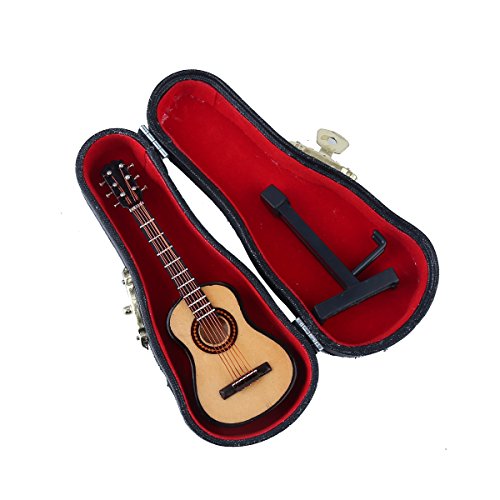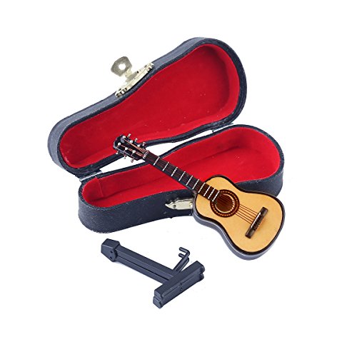 Seawoo Wooden Miniature Guitar with Stand and Case Mini Musical Instrument Miniature Dollhouse Model Home decoration (3.94"x1.42"x0.59")