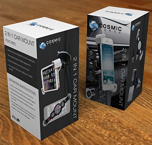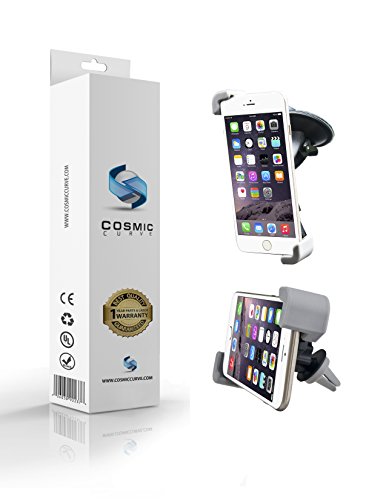 Mobile Phone Car Mount COSMIC CURVE 2-in-1 Multifunctional 360 Degrees Smartphone Windshield and Air Vent Car Mount Holder - 100% Money Back Guarantee - Universal with Fast Swift-Snap Technology for Cell Phones, Mini Tablets, Apple iPhone 6, 6 Plus, iPhon