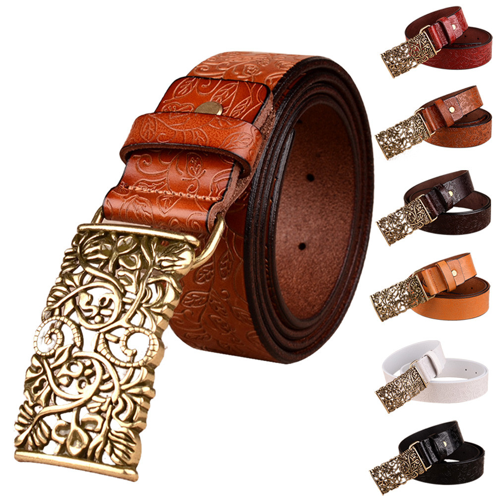 women belt print flower imitation leather Retro Fashion female palace stretch elastic belt solid vintage match Dress Top 6colour