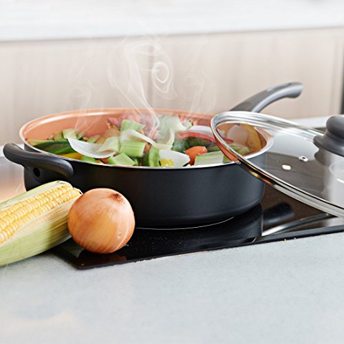 Features and Benefits:A welcome addition to any kitchen, this cookware is constructed from premium quality aluminum alloy for quick and even heating. The tempered glass lid allows for easy viewing of your food while it is being cooked. Ergonomically designed handle with helper handle, gives a cool and comfortable grip. It works well on all types of surface including gas, electric, ceramic and induction cooktops. It is dishwasher safe so you can spend less time cleaning up and more doing what you love most.