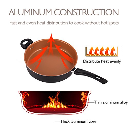 HEATS QUICKLY & EVENLY - This copper pan is made of professional grade aluminum alloy that conducts heat quickly and evenly with precise temperature control and no hot spot