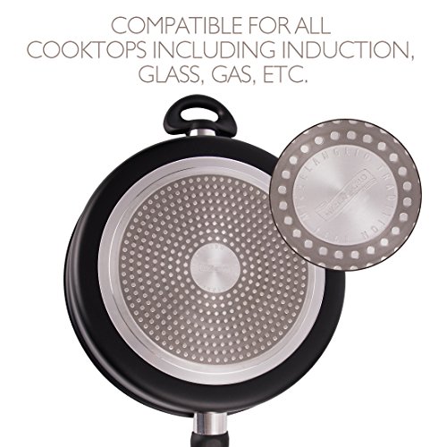 NON TOXIC & INDUNCTION COMPATIBLE - Non toxic coating that is PFOA and PTFE free for healthy cooking. Suitable for use on all stove tops including induction, glass & gas. Dishwasher Safe