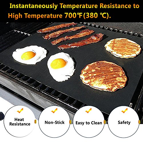 - Heat resistance – The grill mats can be continuous used in -90~500℉(-70 ~ 260 ℃), instantaneously temperature resistance to high temperature 700℉(380 ℃).