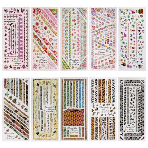 We know you loved temporary tattoos as a kid. Now you can fall in love with them again, but for your nails! This 10 sheet set of nail art water transfer stickers can get your nails from blah to BAM in just minutes. Free-handing is a thing of the past! If you are a DIY'er, you'll go gaga for these time saving, chic designs that will go with your already trendy nail colors. Buy as a gift for a fellow nail enthusiast or keep for yourself. *INSTRUCTIONS*: 1) Start with clean, or just painted, dry nails. 2) Pick and cut the design you want. 3) Put design into luke warm water for a few seconds. 4) Pull out of the warm water and use tweezers to grab the transfer design and place on your nail. 5) Let design completely dry, then use a topcoat to seal in design. *NOTE*: Design MUST be completely dry before using topcoat. Due to differences between monitor displays, actual color may vary slightly from image. b.m.c is a registered trademark of Remi Collections LLC and is exclusively distributed by Bundle Monster. The b.m.c trademark is protected by US Trademark Law.Feature