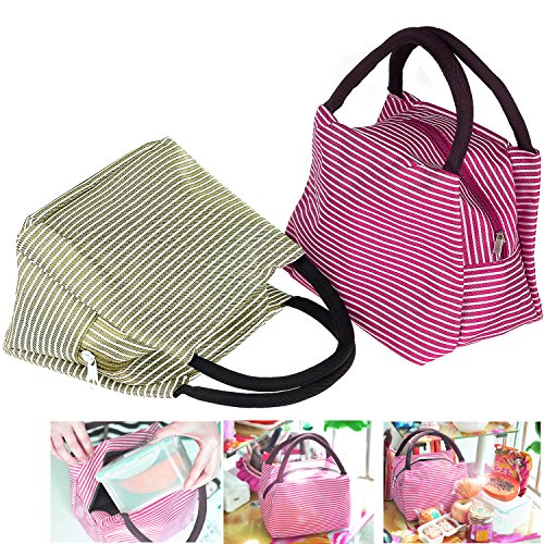 Danibos Large Solid Useful Linen Cotton 2pc Fashion Lunch Tote Bag Insulated Lunch Bag with Zipper