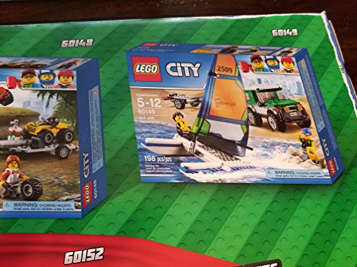5 Sets included are: 60147 Fishing Boat 60148 ATV Race Team 60149 4x4 with Catamaran 60150 Pizza Van 60152 Sweeper & Excavator