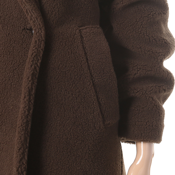 포켓 장식과 뽀글이 털 장식으로 포인트를 준 롱 자켓 입니다. 히든 버튼 디테일로 깔끔함을 더한 아이템 입니다.