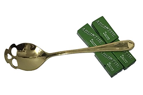 - Set Includes 1 Yellow Gold Colored Tea Spoon and 4 Packs of Absinthe Sugar Cubes (8 Cubes)