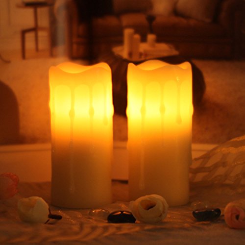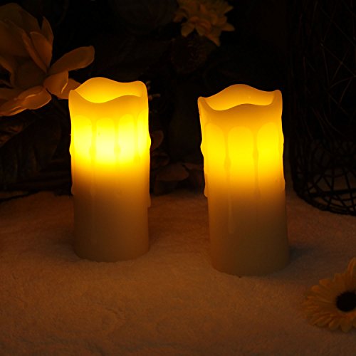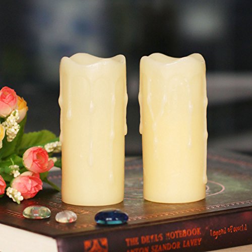 Led Candles-Melted Dripping Flickering Flameless Pillar Wax Candle With Timer,1.75x4 Inches,Ivory,Pack of 2
