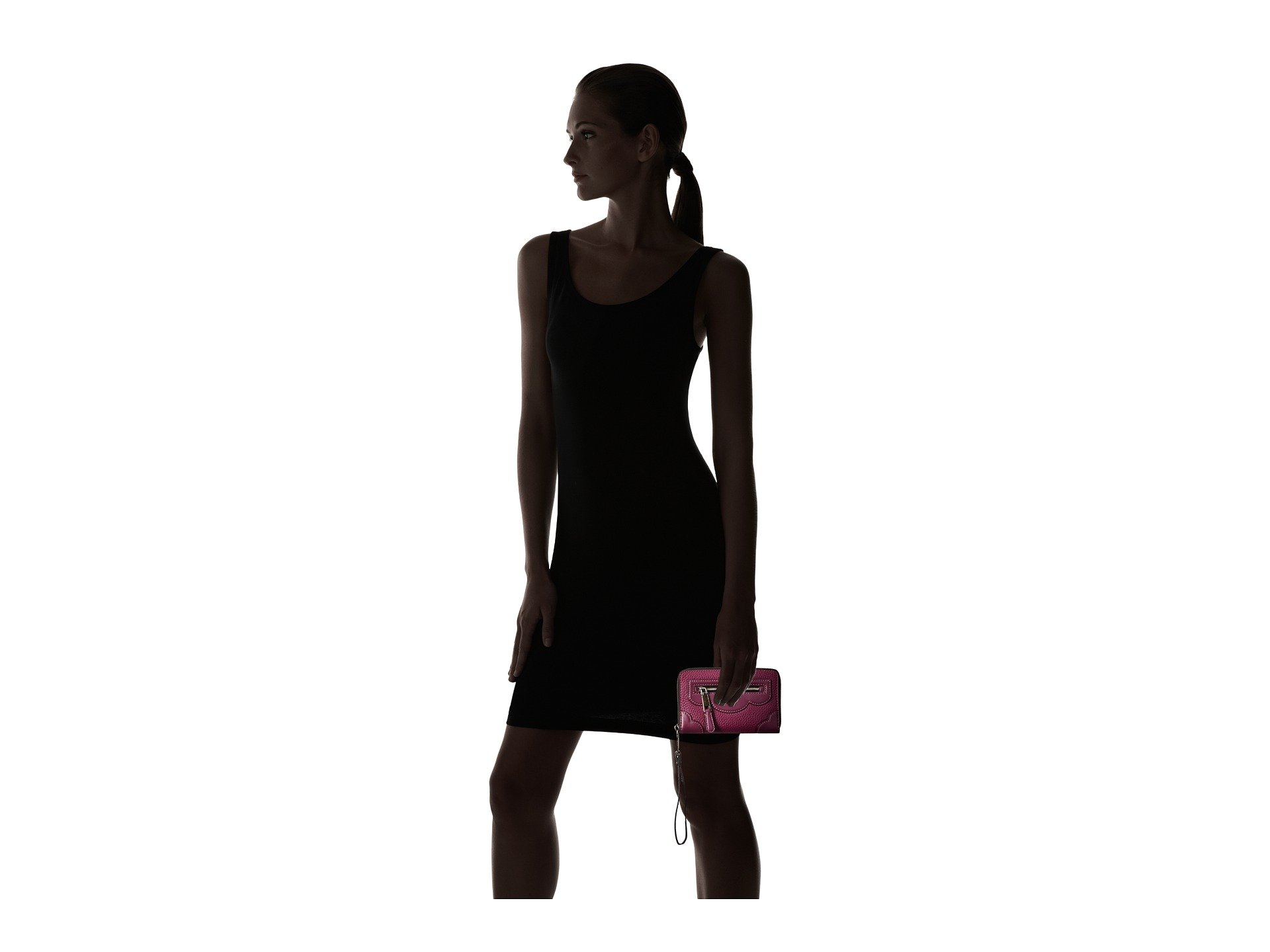 | Product Information SKU: #8756574You have a busy day! Make it easy carrying the Marc Jacobs? Haze Zip Phone Wristlet and have all your essentials at the ready. Wristlet made of leather. Zip-around closure. Wristlet strap. Front exterior zip pocket. Brand name embossed at front. Leather lined interior features slip pockets, credit card slots and phone slot compatible for iPhone? 6. Imported. This item may ship with an attached security tag. Merchandise returned without the original security tag attached or a damaged tag may not qualify for a refund.This product may have a manufacturer's warranty. Please visit the manufacturer's website or contact us at warranty@support.zappos.com for full manufacturer warranty details.Measurements: Bottom Width: 6 in Depth: 1 in Height: 3 1?2 in Handle Length: 10 in Handle Drop: 5 in Weight: 6.2 oz |