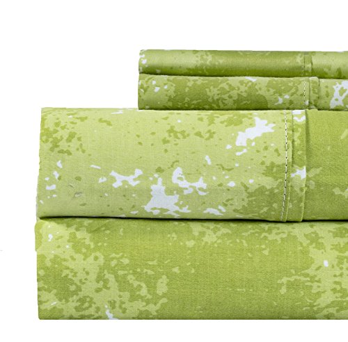 Weavely Marble Print Sheet Set, 400 Thread Count 100% Cotton Green Printed Bed Sheets Set, 4-Piece set, 15 inch Elastic Deep Pocket Fitted Sheet (King, Green)