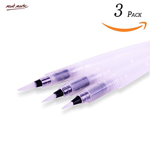 Mont Marte Water Brush Pens Set 3 Sizes Tip-Fine-Medium-Board, Ideal for Watercolor Paints and Soluble Pencils