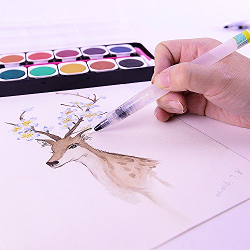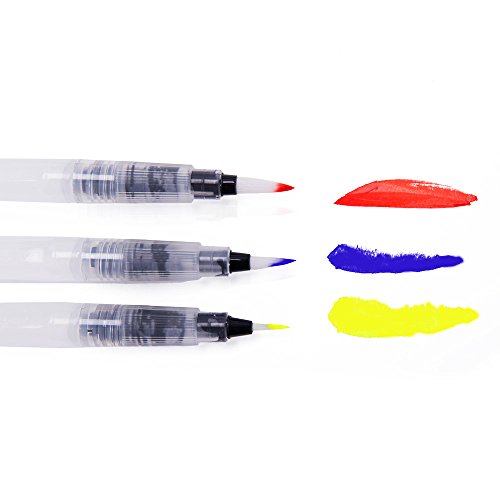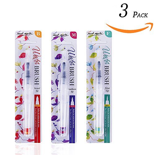 Water painting brushes contain 3 fine tips: 3mm, 4mm, 5mm. You could use water, ink, watercolor paints with Mont Marte water brushes.