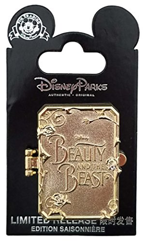 - The pin is a gold book hinged (with a magnetic "lock") with Beauty and the Beast printed in gold on its front