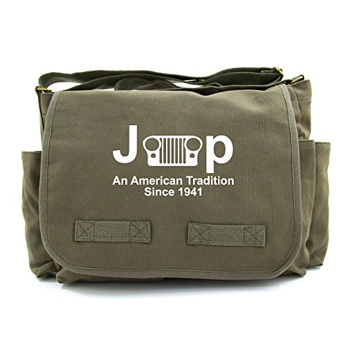 -. Brand : Army Force Gear -. Department : unisex-adult -. Feature : 2 inch Wide Adjustable Shoulder Strap, Comfortable to Carry, Brass hardware / Four Outside Pockets - Great for water bottles, car keys, and wallets / Inside Zipper Pouch, Stonewashed 100% cotton canvas / Enormous Main Compartment, will hold a 15.6 inch laptop / Bag Dimensions: 15" x 11" x 6" -. Label : Army Force Gear -. Manufacturer : Army Force Gear -. Model : AFMG-428-P -. MPN : AFMG-428-P -. PackageQuantity : 1 -. PartNumber : AFMG-428-P -. ProductGroup : Apparel -. ProductTypeName : LAGE -. Publisher : Army Force Gear -. Size : One Size -. Studio : Army Force Gear -. Title : Jeep An American Tredition Army Heavyweight Canvas Messenger Shoulder Bag