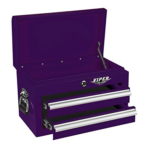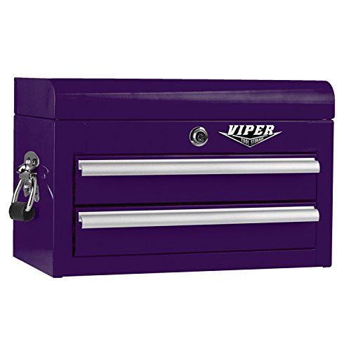 Viper Tool Storage V218MCPU 18-Inch 2-Drawer 18G Steel Mini Storage Chest w/ Lid Compartment, Purple