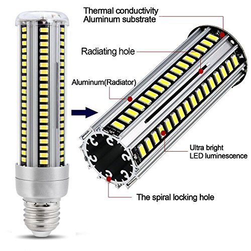 - *Wide Applications - Post Light Accessories Unique design, energy saving, fast cooling,long service life,no glare, no flicker, easy install(just screw to E26 socket). Great for garage, driveway, warehouse, barn, patio, courtyard , led flood light bulbs outdoor dayligh lamps garden, street, office, school, hospital, shopping mall, supermarket, station, restaurant, hotel, workshop etc, anywhere need bright light,Candelabra Led Corn Light Bulbs,60 Watt 100 Watt 250 Watt Equivalent Incandescent Bulb