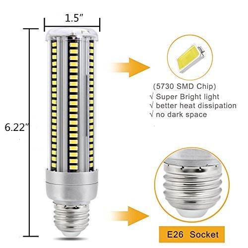 - *Super Bright - 360 Degrees Shining 2500Lm 6500K Cool White E26 socket,Led Corn Light Bulbs,60-220 Watt Equivalent Incandescent Bulb
