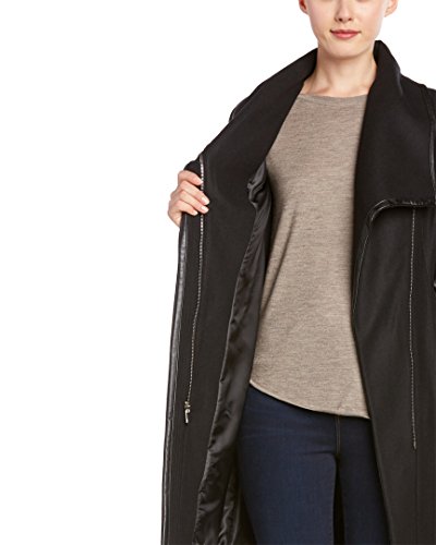 Product DescriptionWool wrap coat with asymmetrical zip. Eco leather sleeves with power stretch0