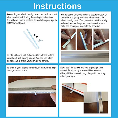 No Tools Required; 8" Long x 1/2" Wide Double-Sided Foam Mounting Tape That Attaches to the Post to the Back of Sign or includes 4 self tapping screws