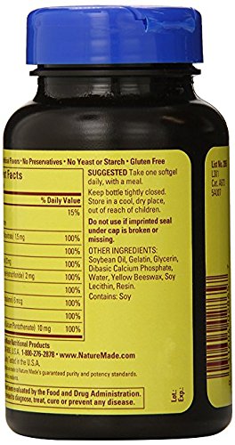 Nature Made full strength mini's super B complex delivers the same formula as the Nature Made super B complex it replaced in a softgel that is now 39% smaller. Maintaining your energy level can help you feel your best. Nature Made super B complex is a combination of essential B vitamins (thiamin, riboflavin, niacin, B-6, folic acid, biotin and pantothenic acid) that work together to help produce energy.Feature