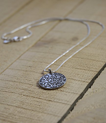-. Feature : ORIGINAL KING SOLOMON AMULET NECKLACE - The King Solomon amulets are inspired by King Solomon and provide people the focus and energy to pursue a dream, face a fear or accomplish a desired goal. / KING SOLOMON SILVER AMULET FOR PROTECTION AND SAFEGUARD - This is a King Solomon Amulet for safety and protection. It helps protect the wearer on work trips, business, military service and journeys away from home. The amulet helps avoid dangers, find the right way, trust worthy friends, allies and good business partners. It keeps the owner alert to dangers while focused on other things. / 925 STERLING SILVER DOUBLE-SIDED AMULET - The amulet is inscribed on both sides with ancient Hebrew and various geometric and astrological symbols from circa 800 BC. The Amulet is 925 Sterling Silver (stamped) and the Snake Chain is Silver Plated Base. / 19" NECKLACE in NATURAL COTTON POUCH - The sterling silver amulet is approximately 1.2" long and hangs on a 19" silver plated snake chain with lobster clasp. Each necklace is package in a Natural Cotton pouch by MIZZE. / ** 100% FULL MONEY BACK GUARANTEE - MIZZE Made for Luck Jewelry stands behind our brand and provide 100% full money back guarantee. If you are unhappy with your King Solomon Amulet Necklace, for any reason, please contact us!
