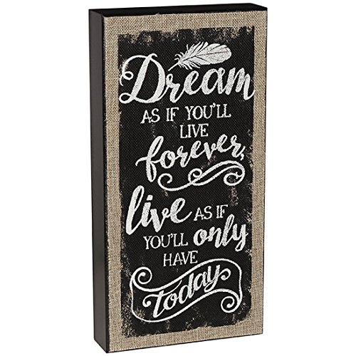 Dream Forever Live Today Black 14 x 7 Burlap and Wood Block Wall Sign Plaque