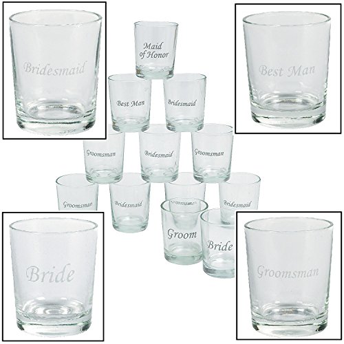 Etched Wedding Party Shot Glasses (12 Pieces) 1 oz. 2"